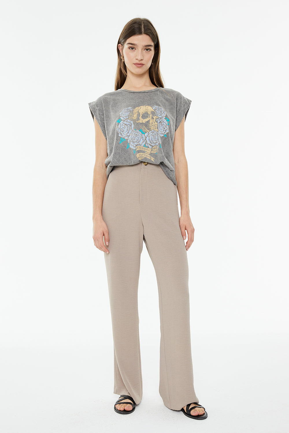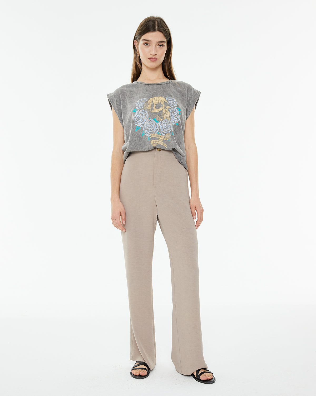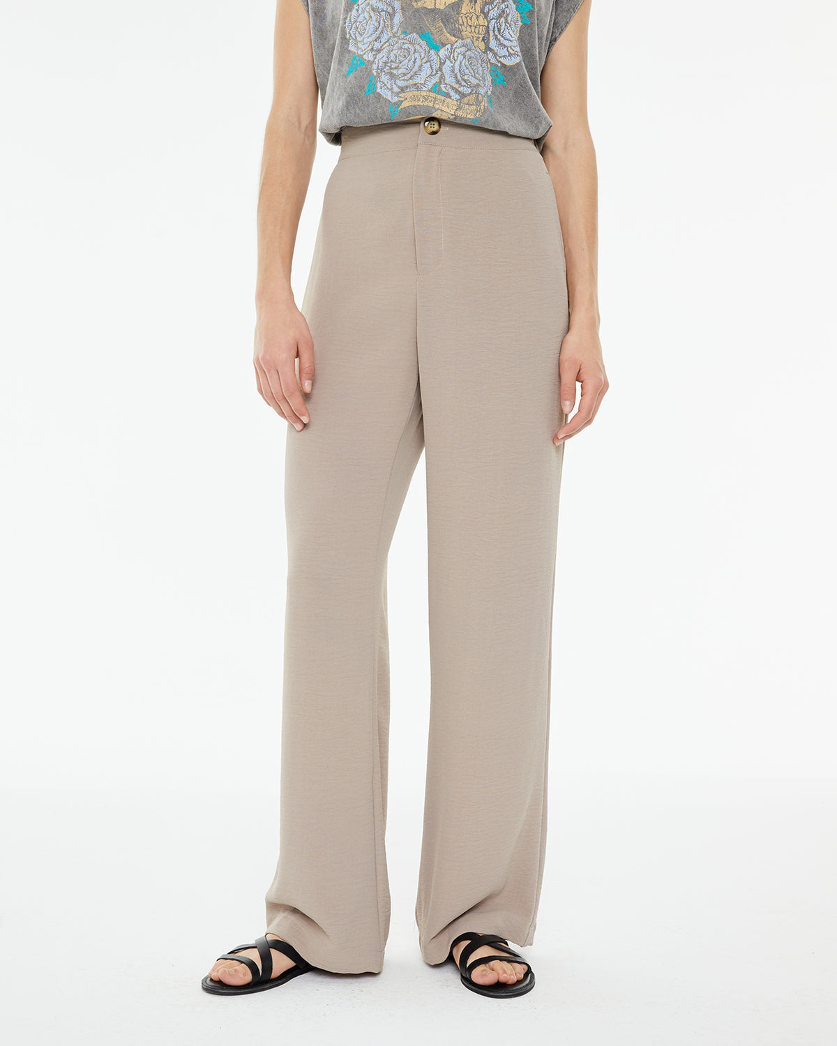 Pantalón fluido con goma en cintura y pinzas delanteras