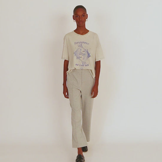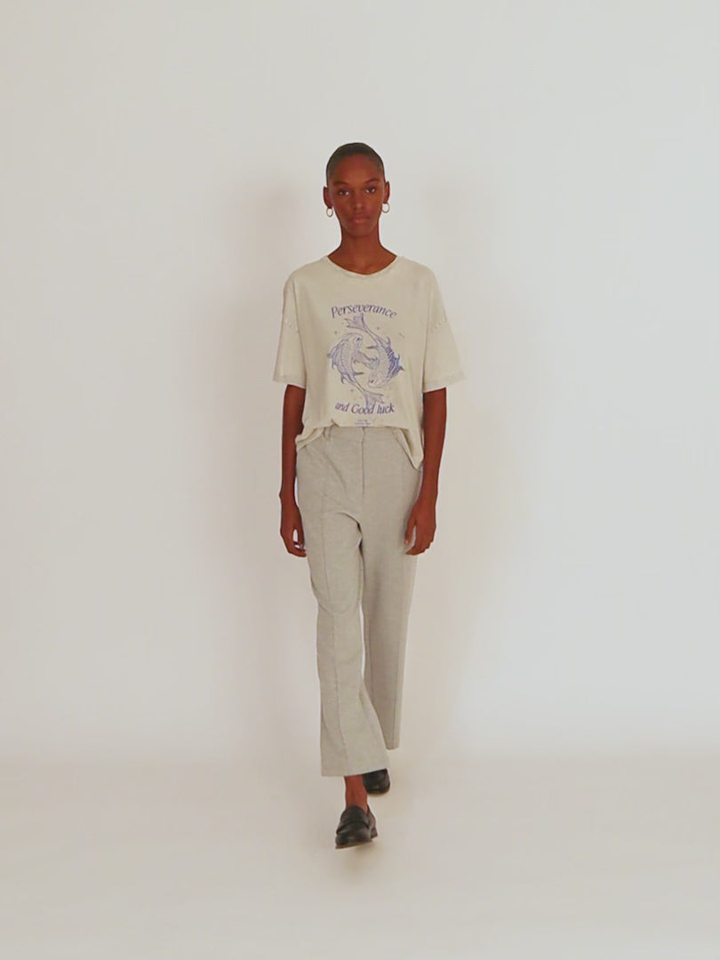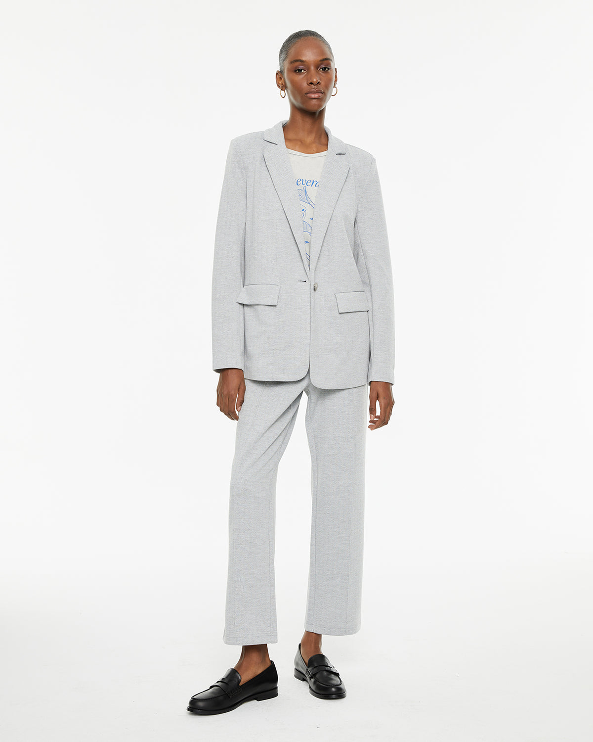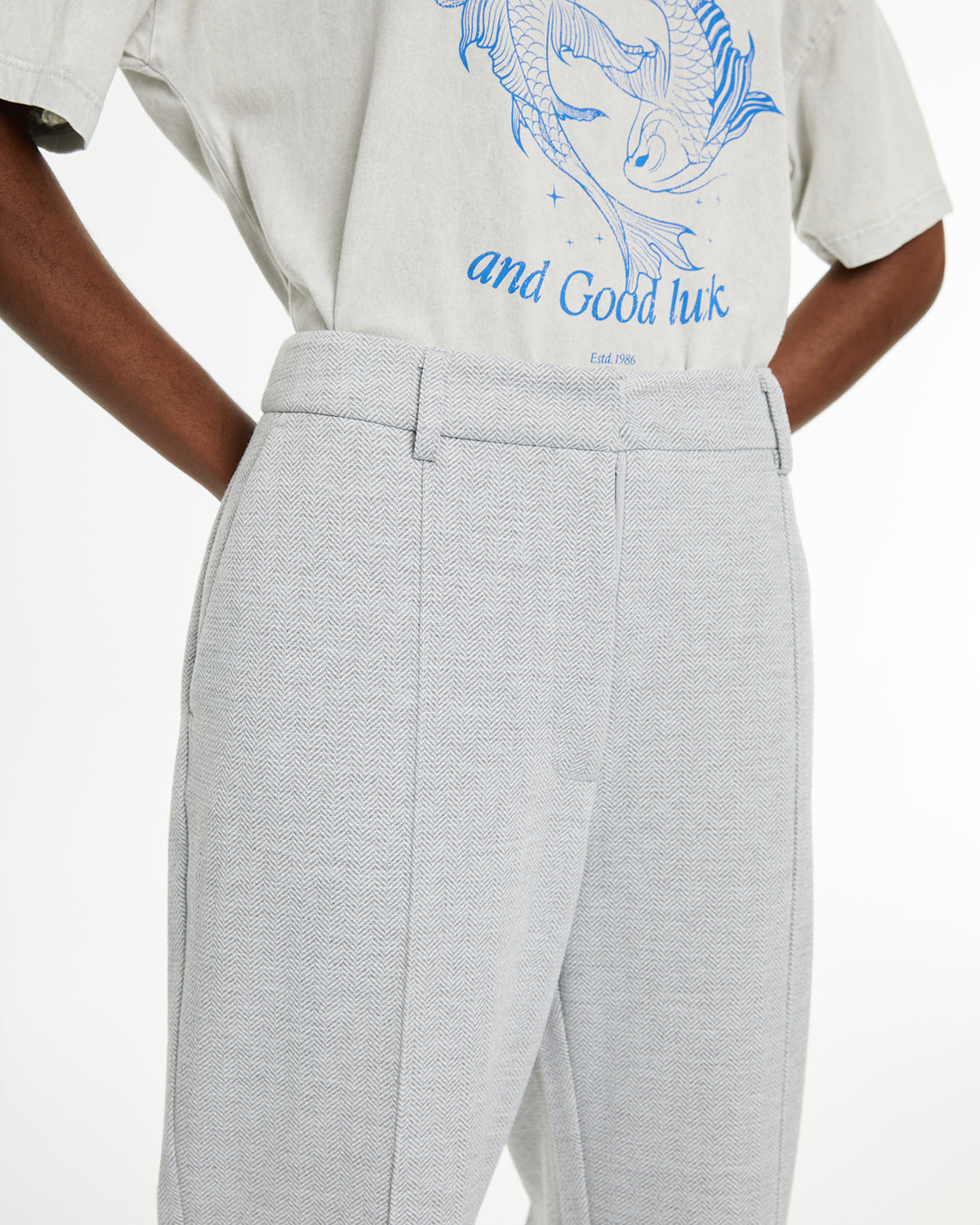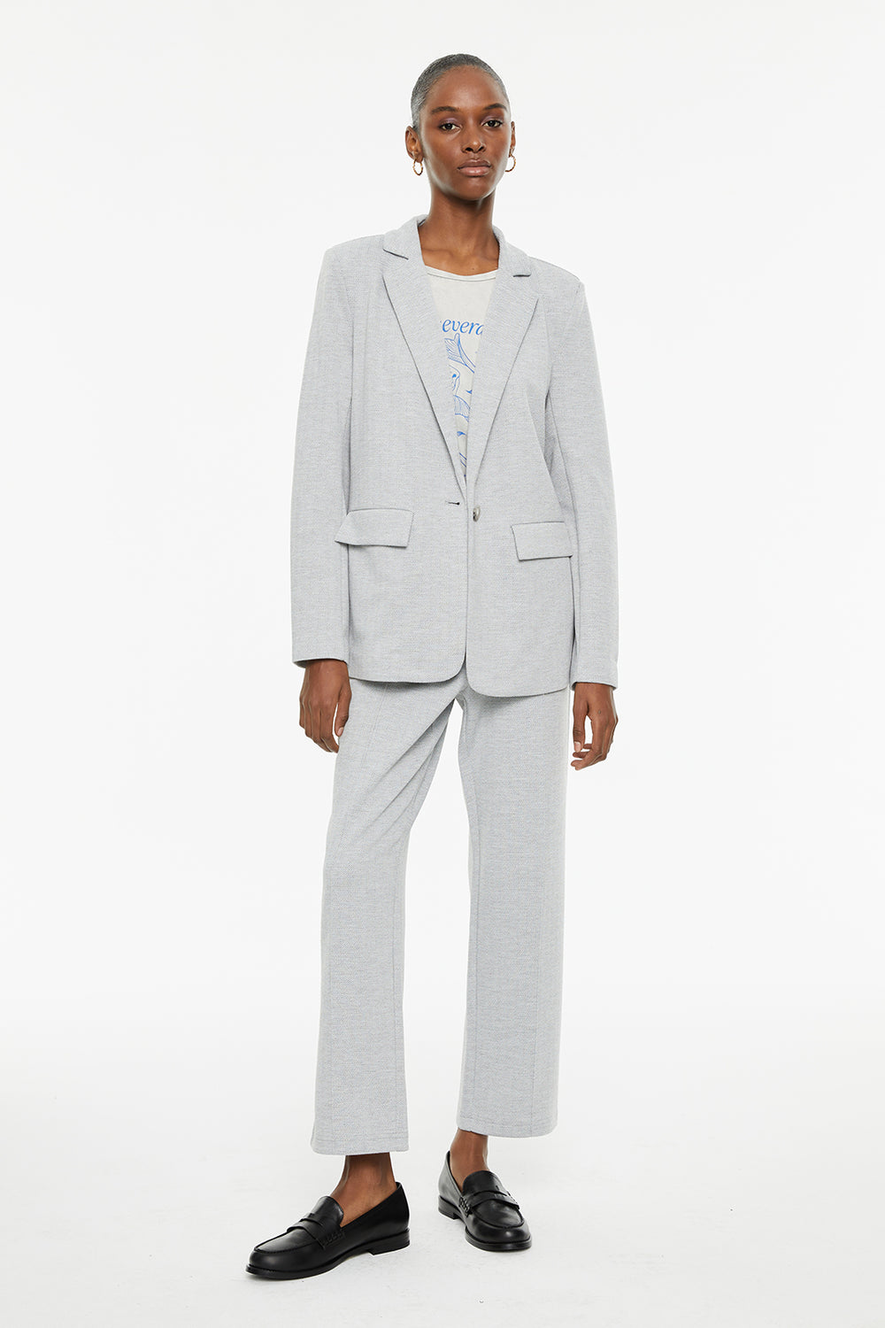Pantalón de mujer en tejido de jacquard, confort con cierre frontal con cremallera y cierre interior, tiro medio y Bolsillos laterales.