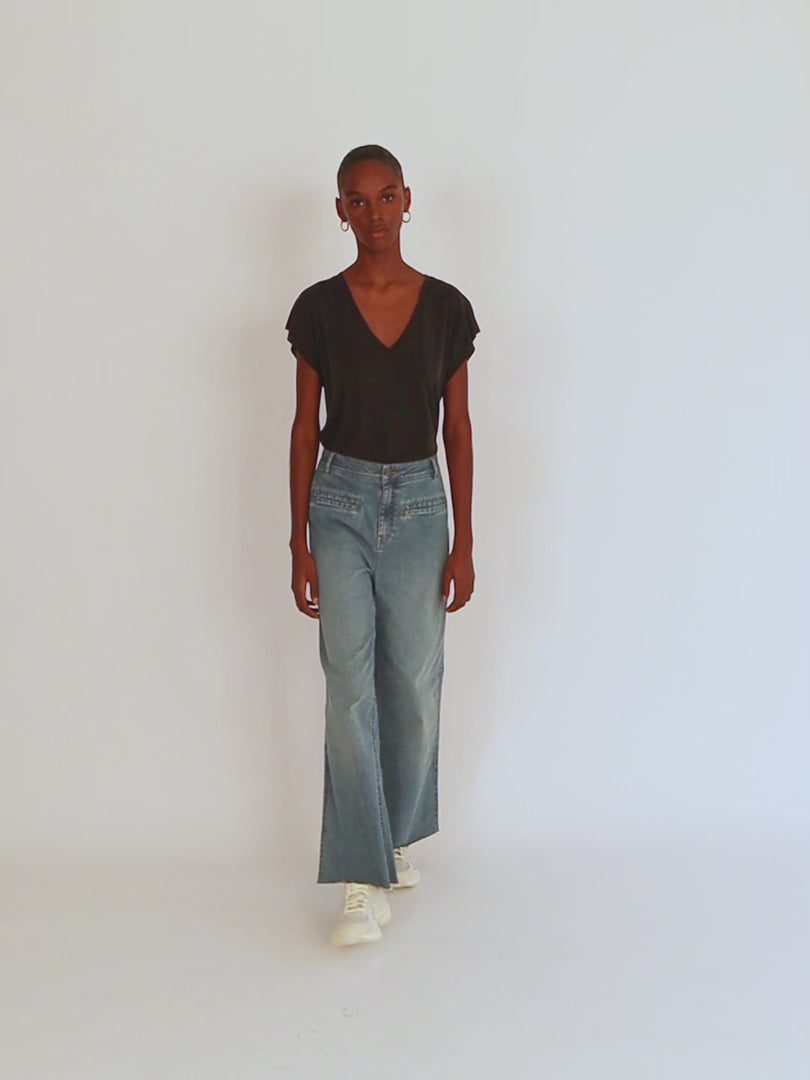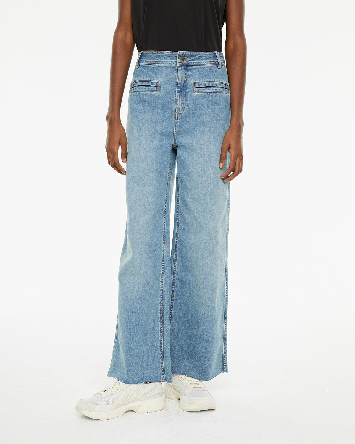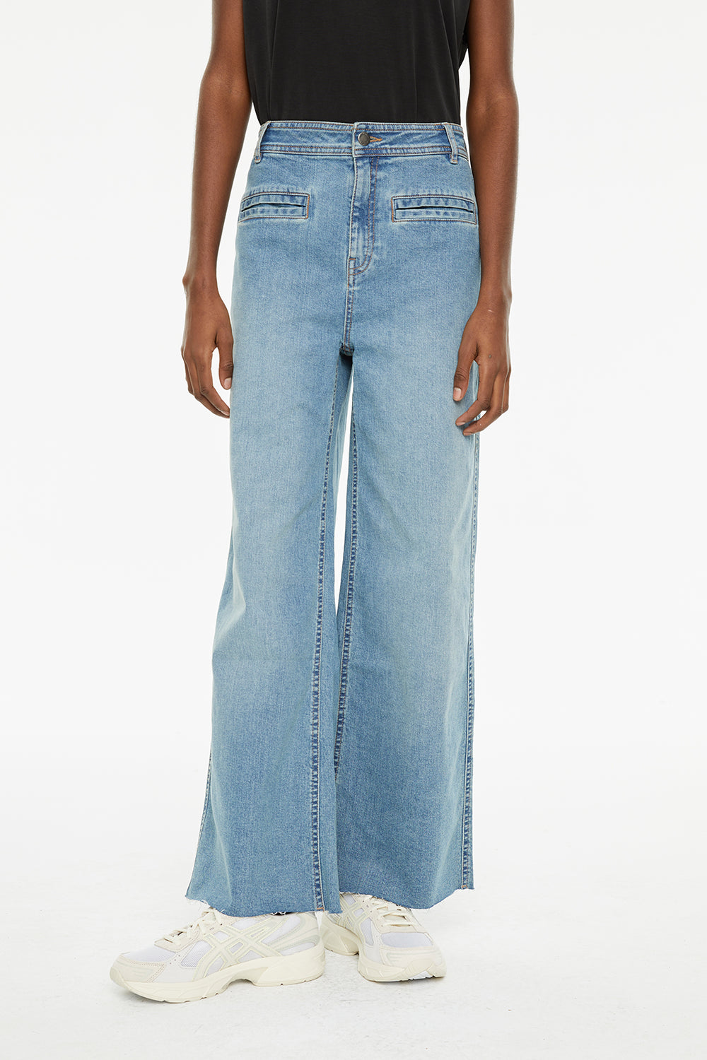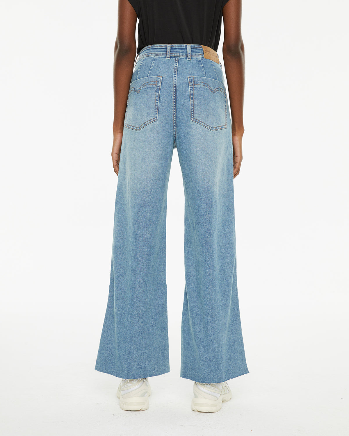 Pantalón vaquero wide leg tiro medio bolsillos delanteros vivo