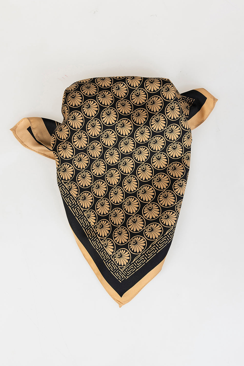 Pañuelo estampado geometrico fondo negro.