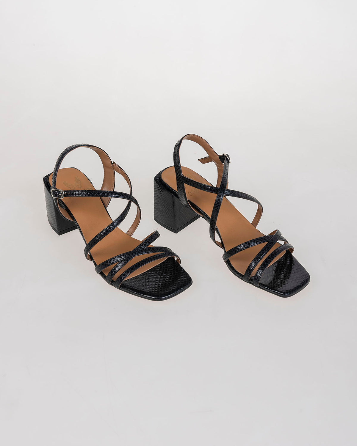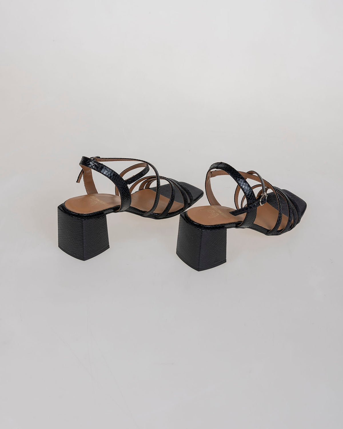 Sandalia negra con tiras de piel