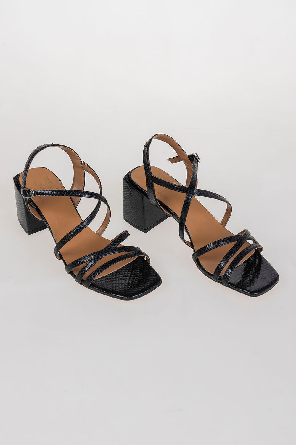 Sandalia negra con tiras de piel