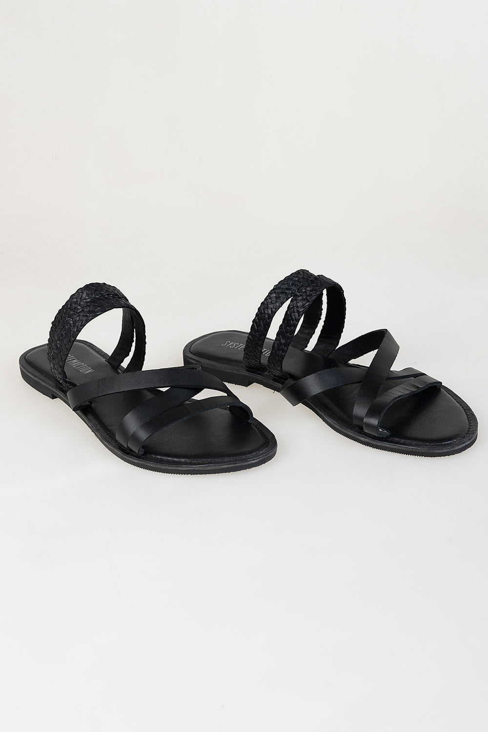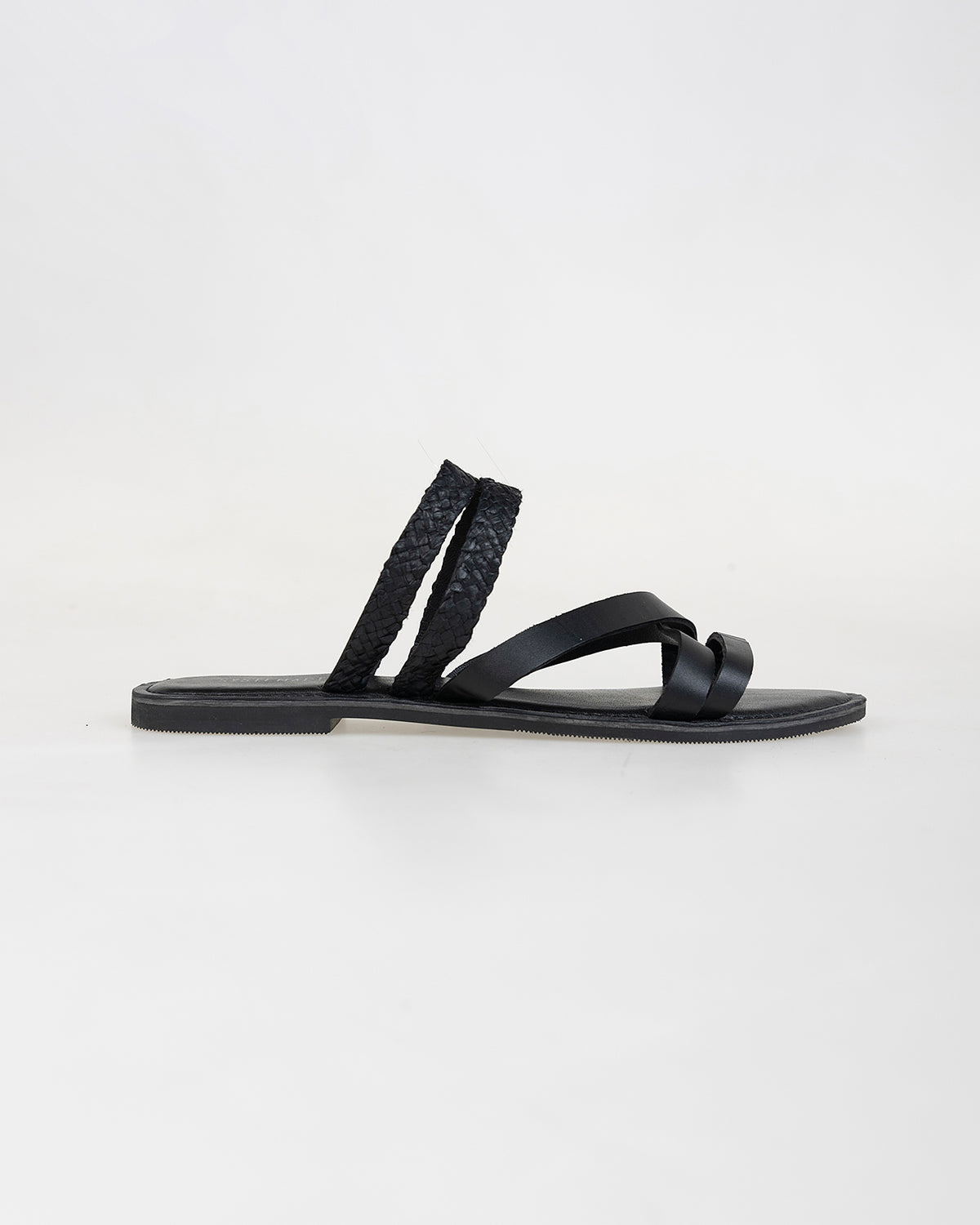Sandalia plana negra tiras