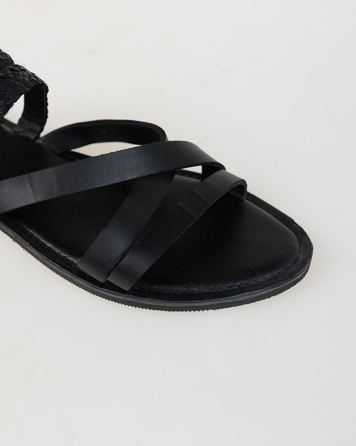 Sandalía plana negra tiras.