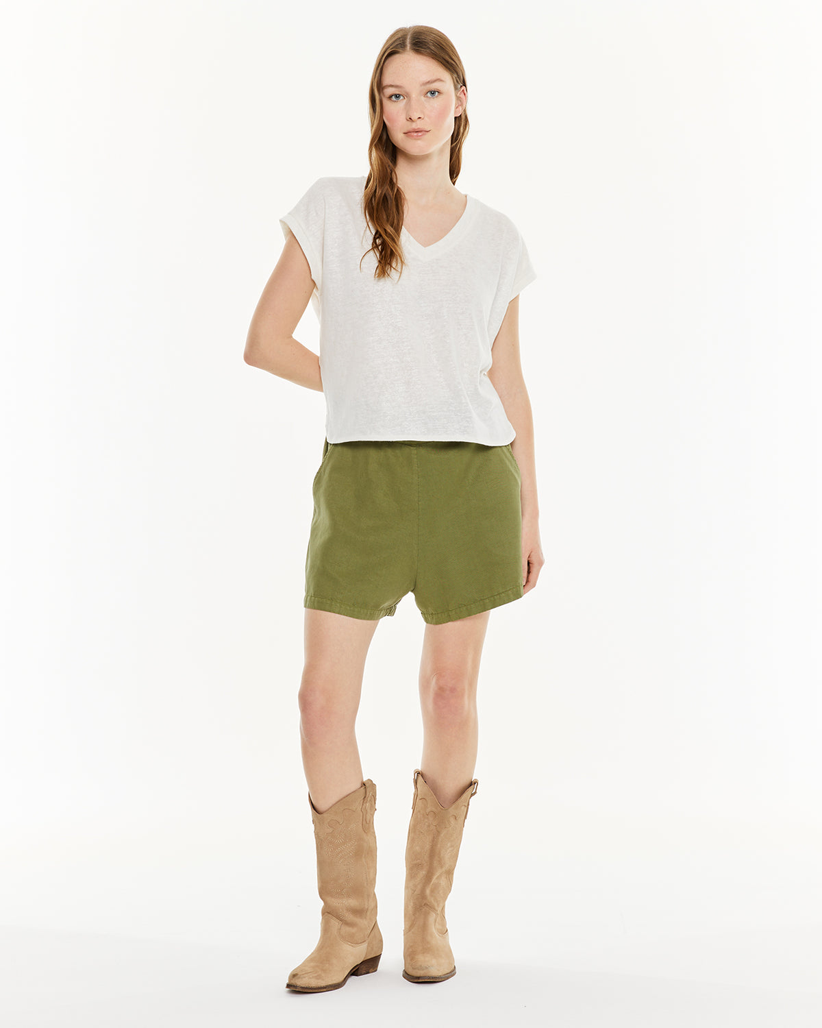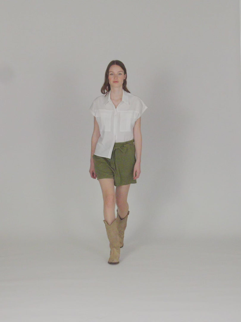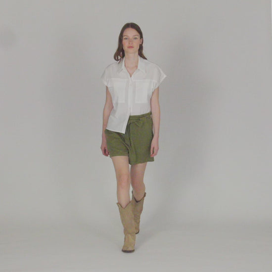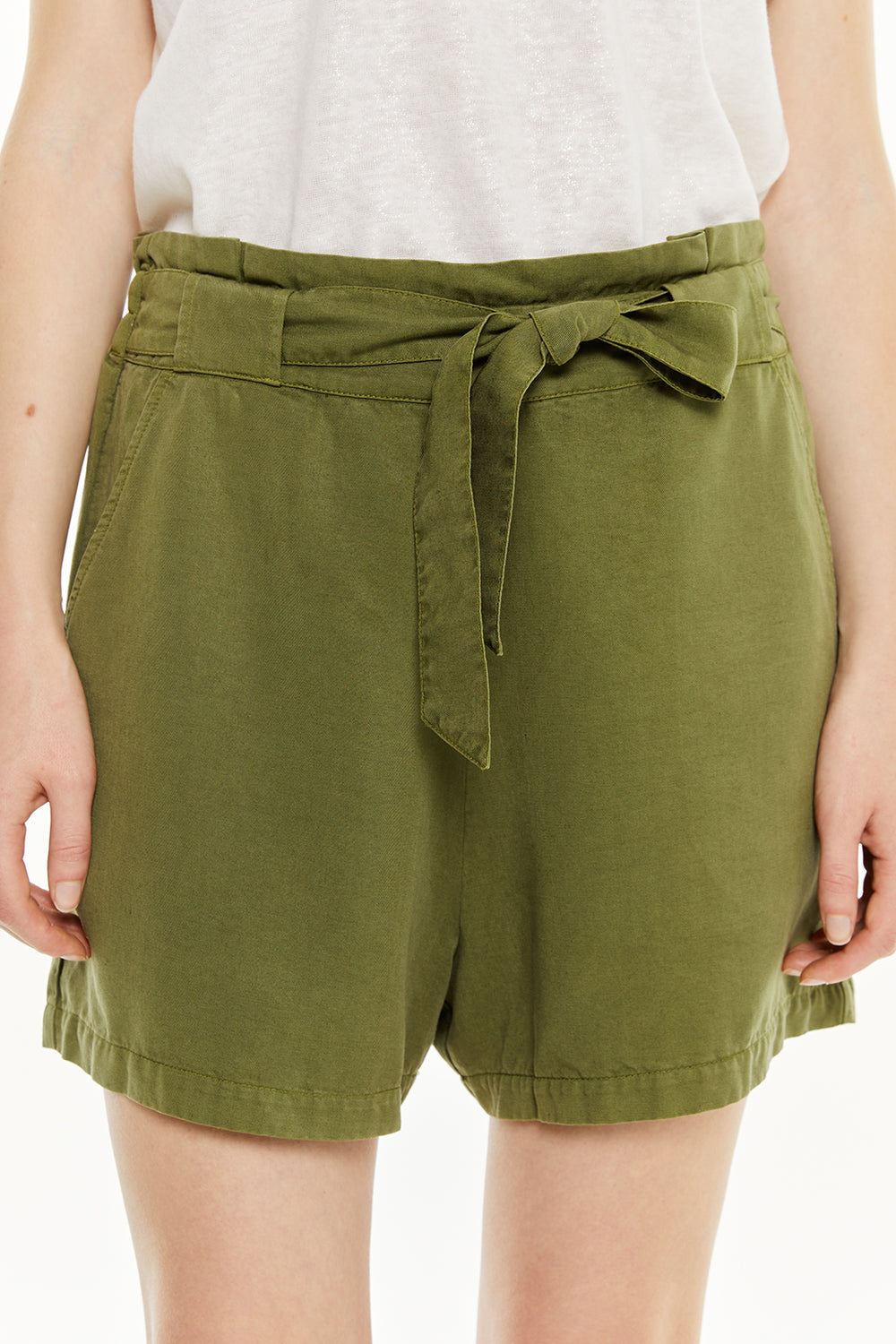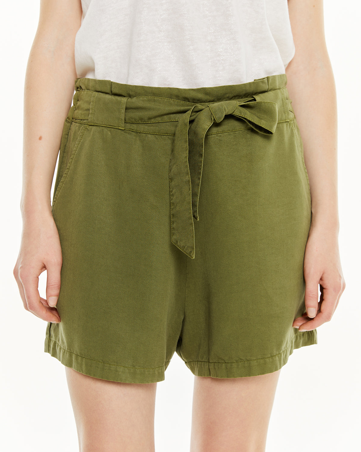 Short corto mujer con cinturón en la cintura. prenda sostenible.