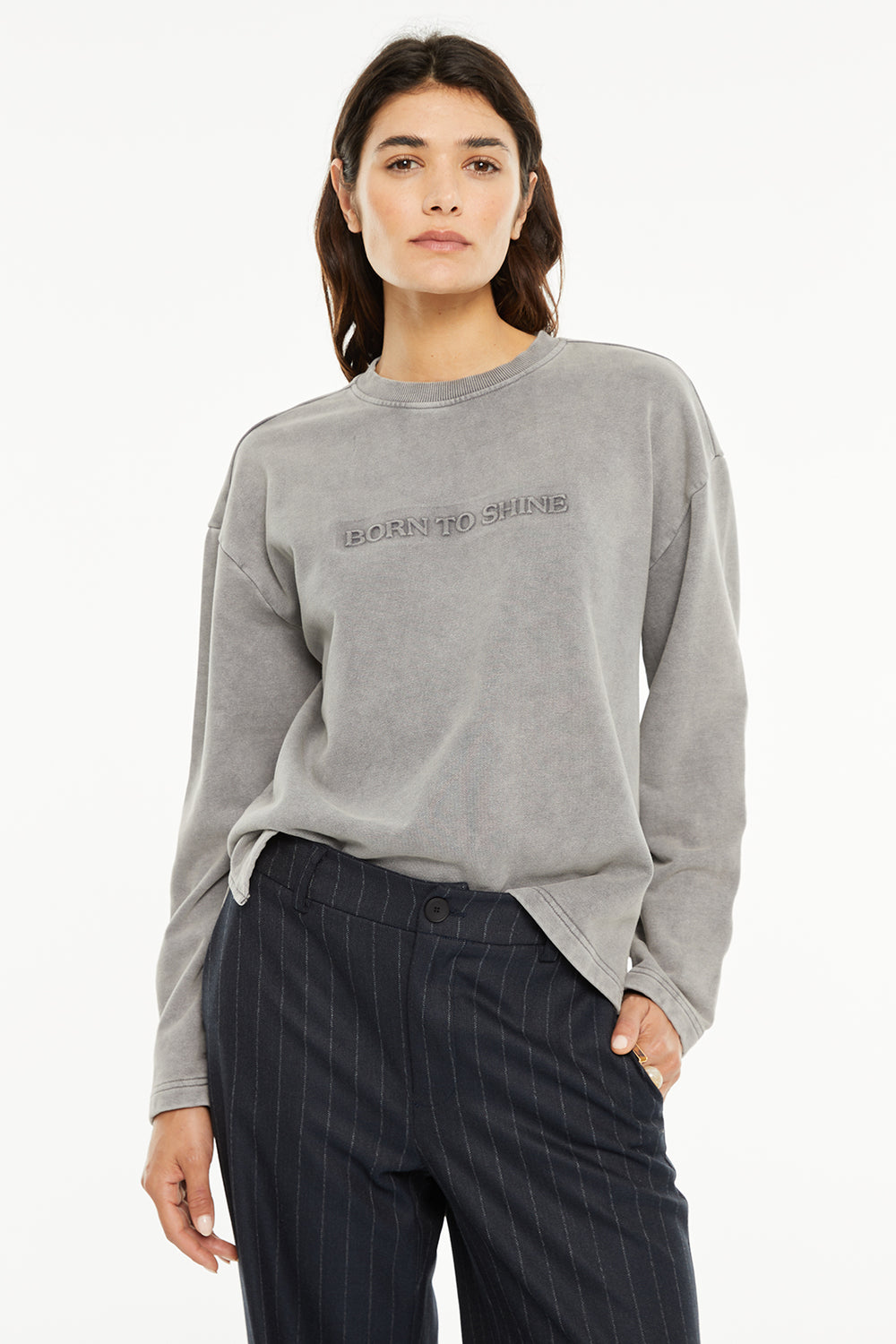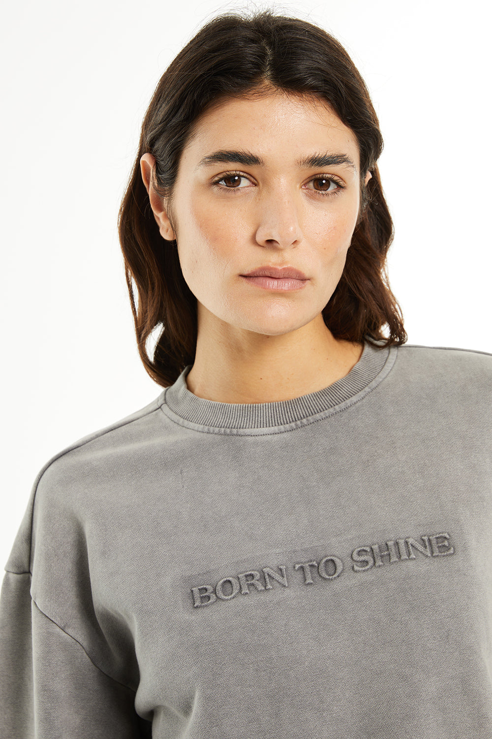 Sudadera de mujer, con cuello redondo y manga larga. Detalle de mensaje en el delantero.