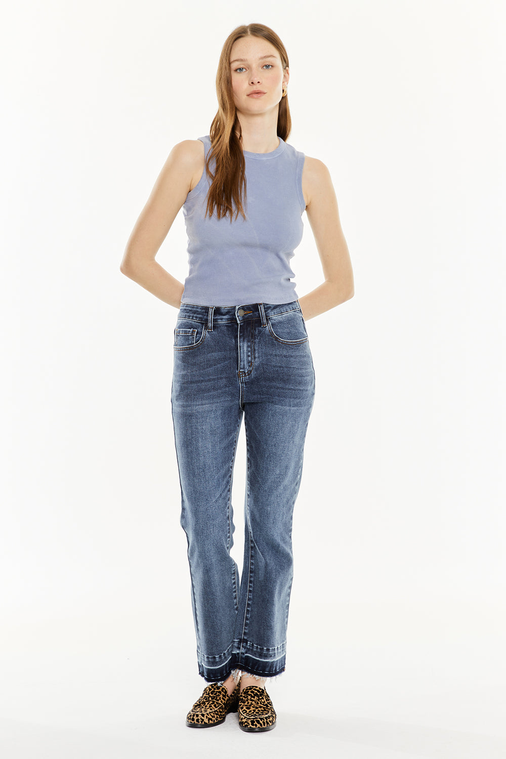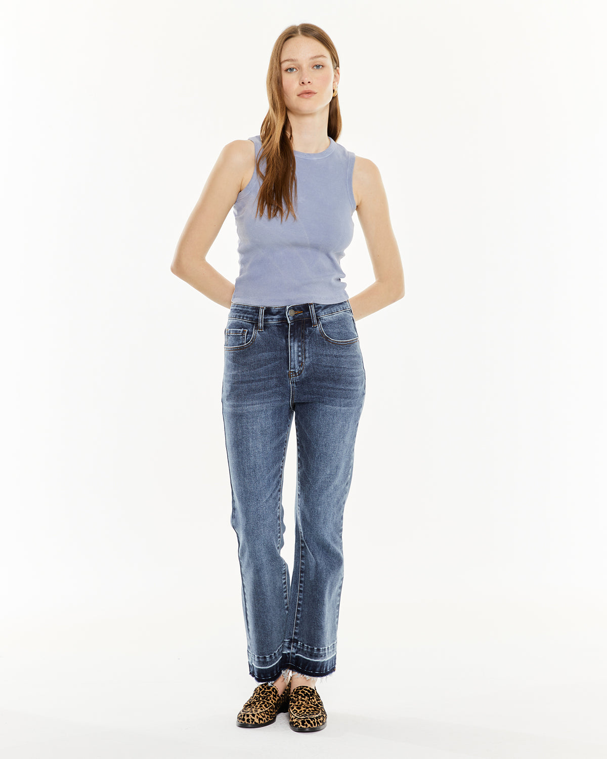 Camiseta de mujer sin mangas, con tintura efecto de lavado. Prenda sostenible.