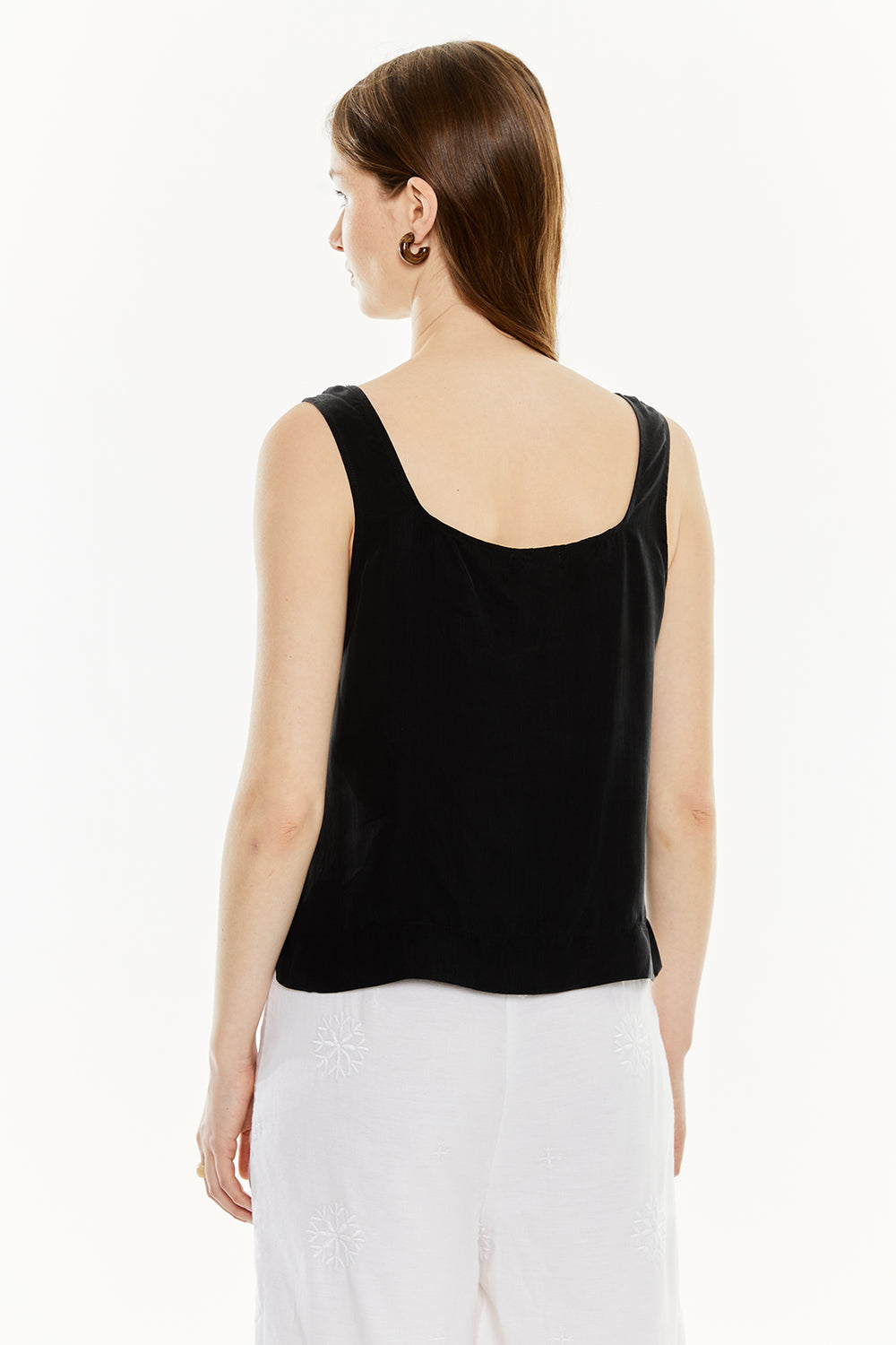 Top de tirantes de mujer con tejido de cupro. Prenda sostenible.