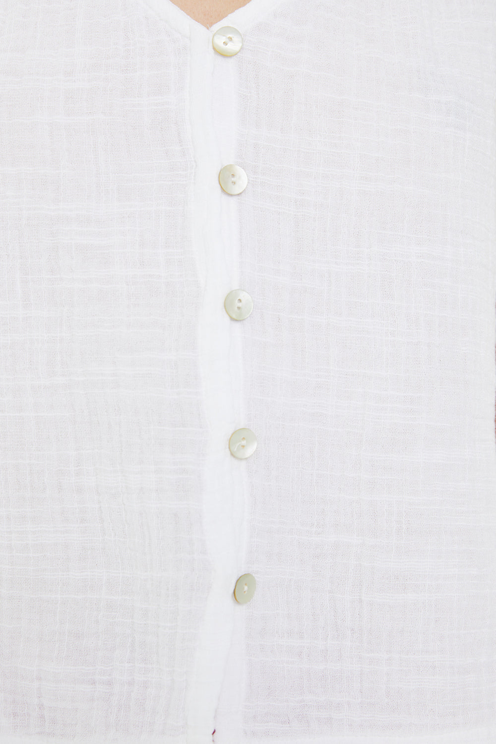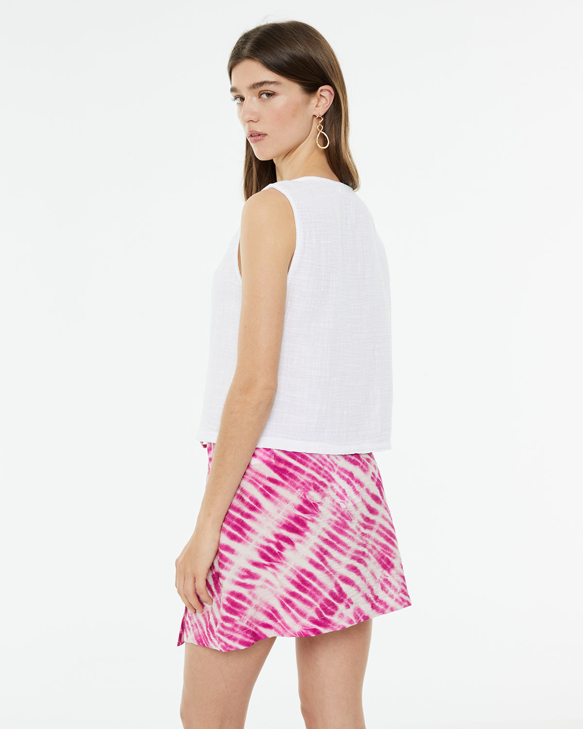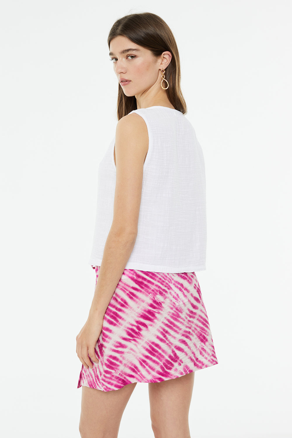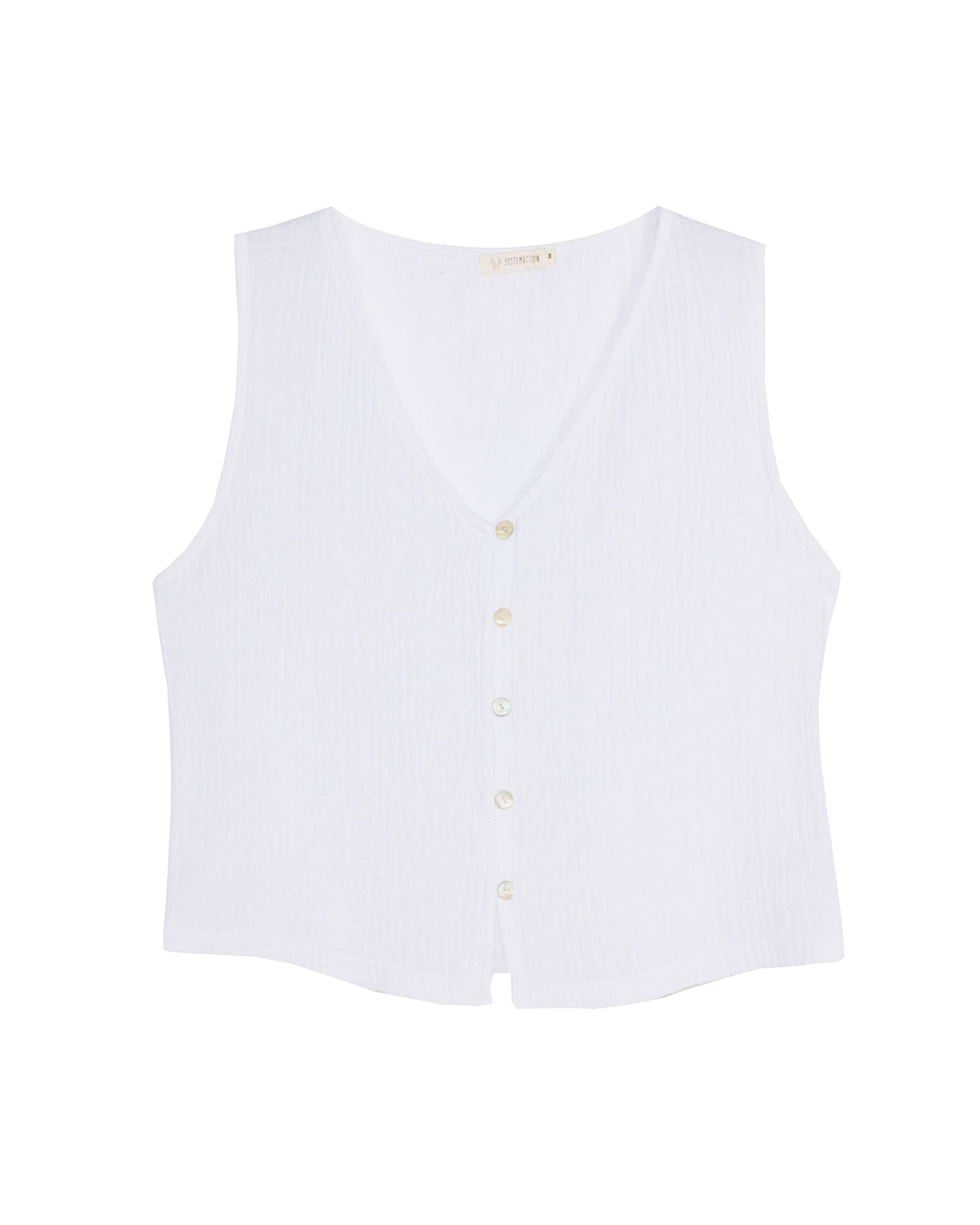 Top de mujer de tirantes, cuello pico, cierre con botones delanteros. Prenda sostenible.