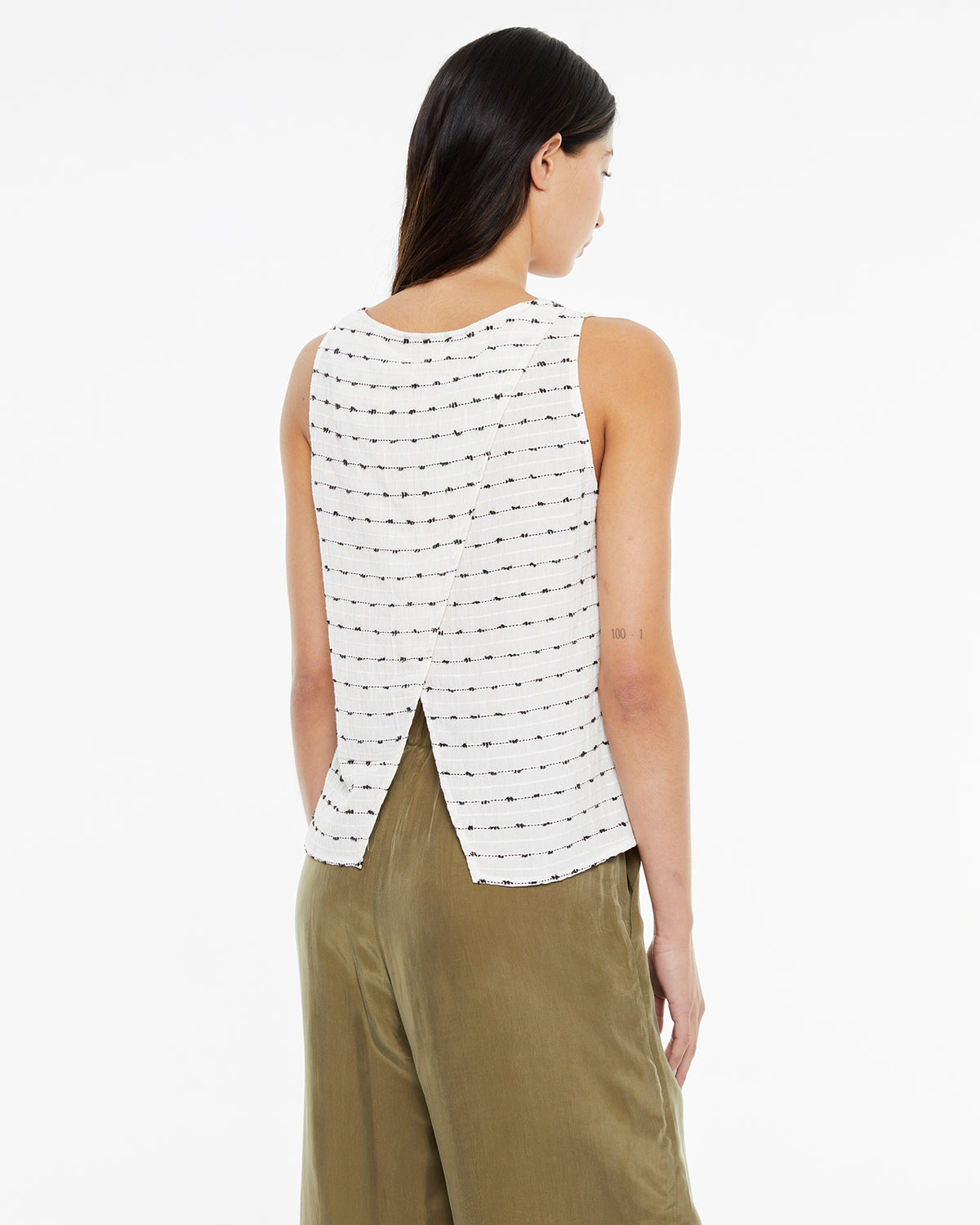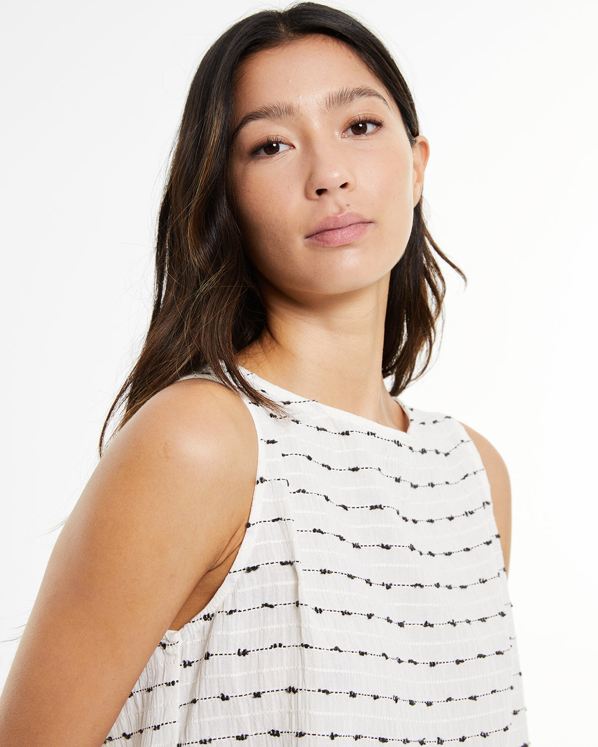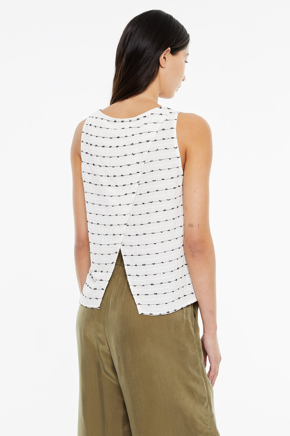 Top tirantes de mujer de rayas con efecto plumeti y escote redondo.