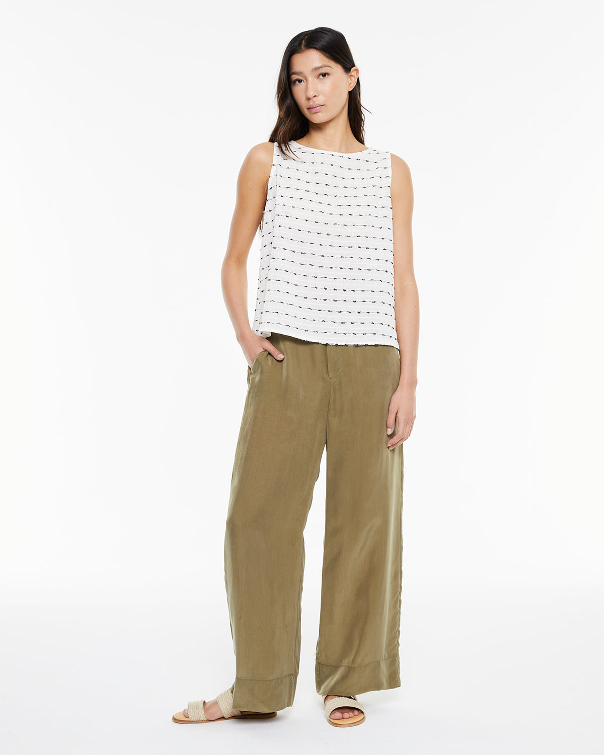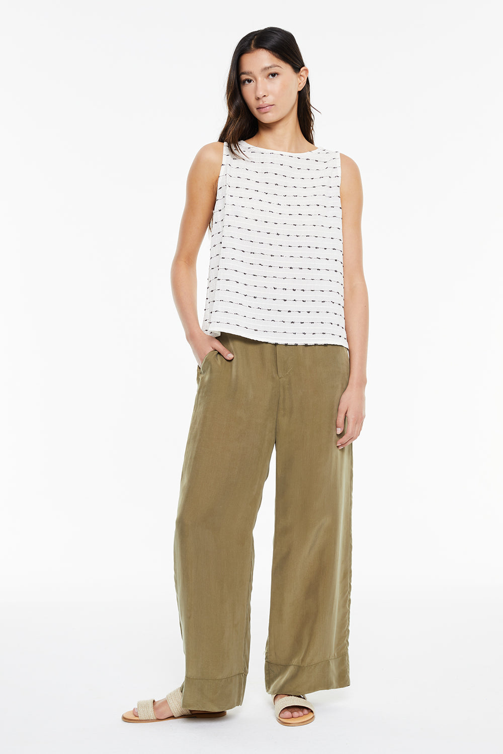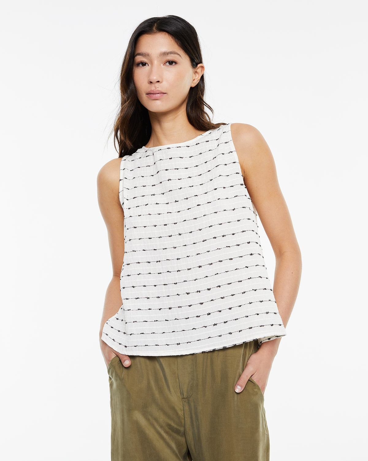 Top tirantes de mujer de rayas con efecto plumeti y escote redondo.