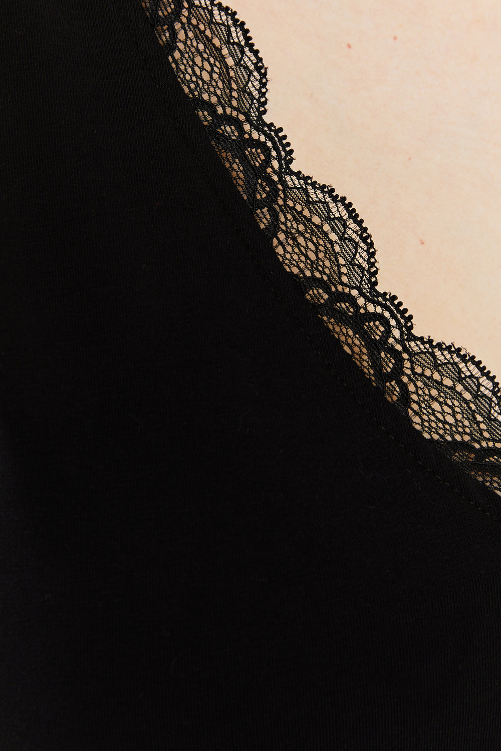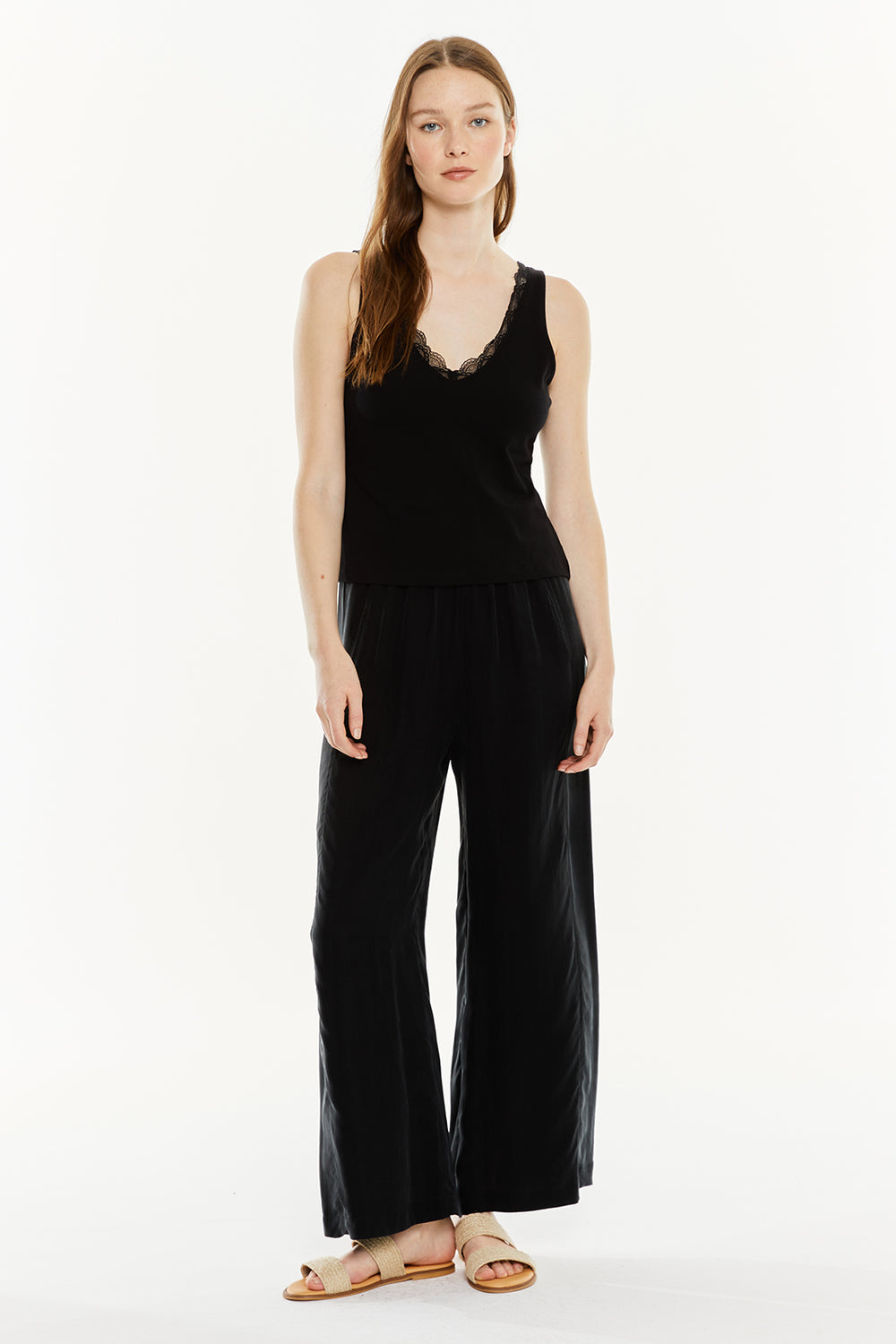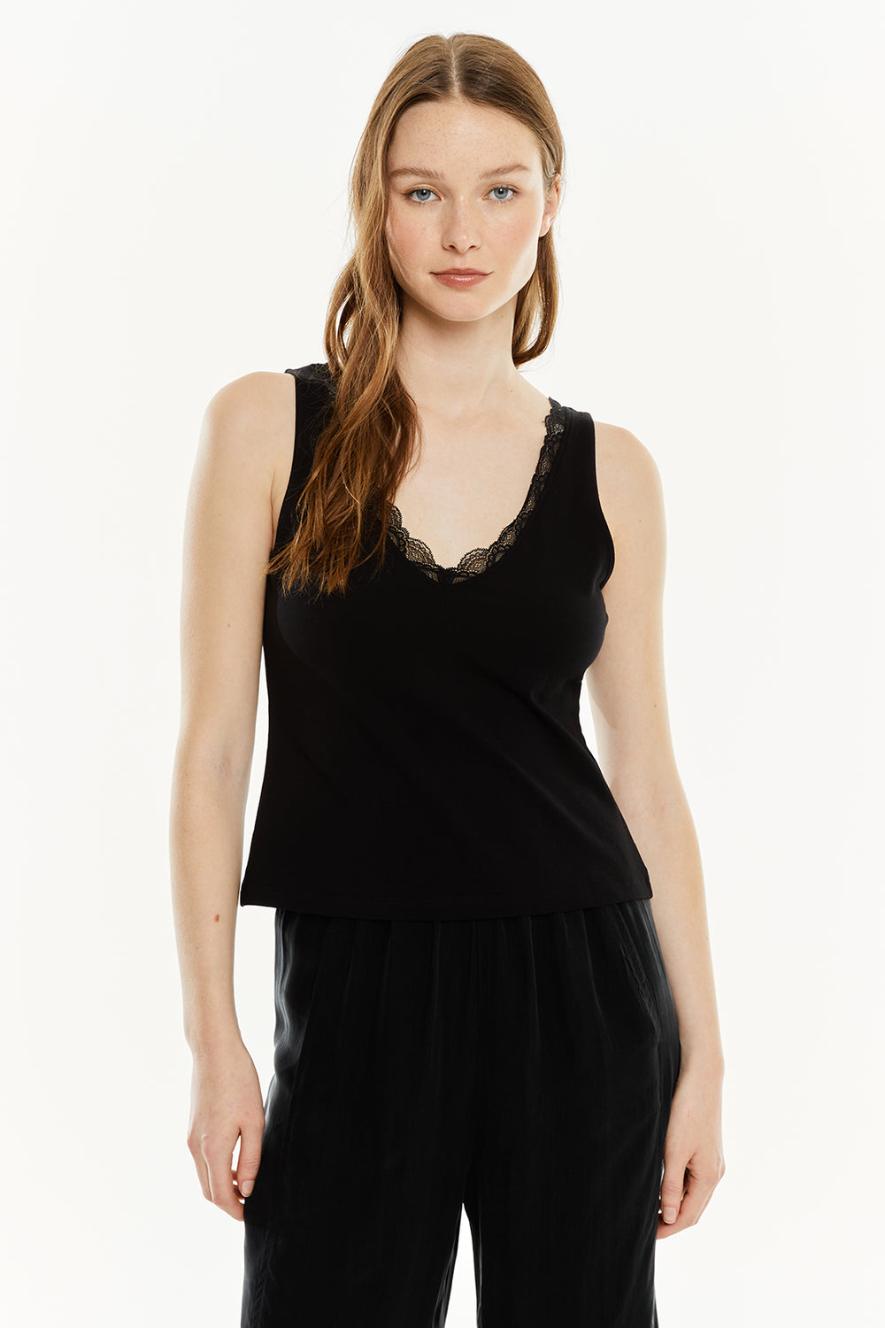 Top de mujer entallado con tirantes y detalle de puntilla. Prenda sostenible.