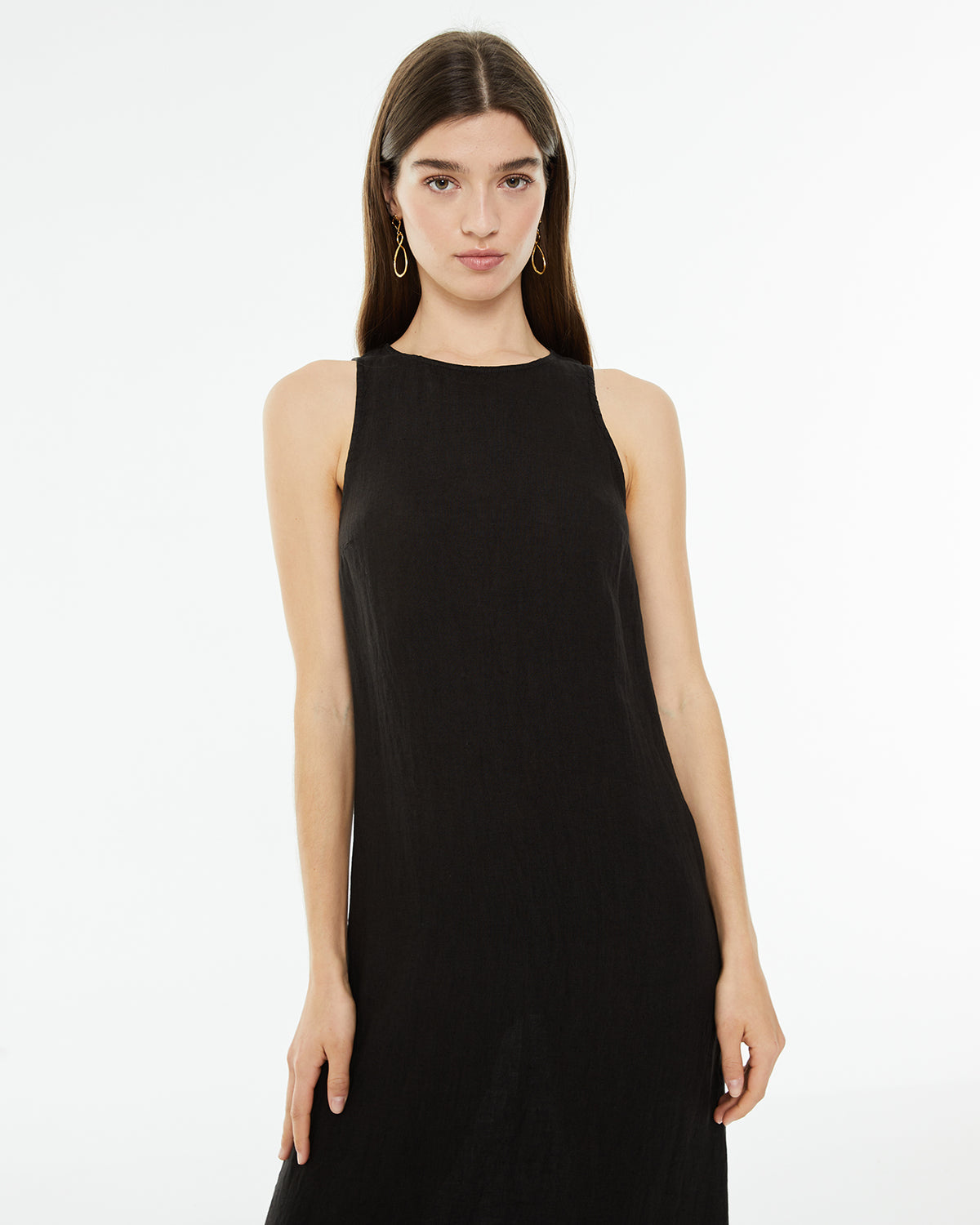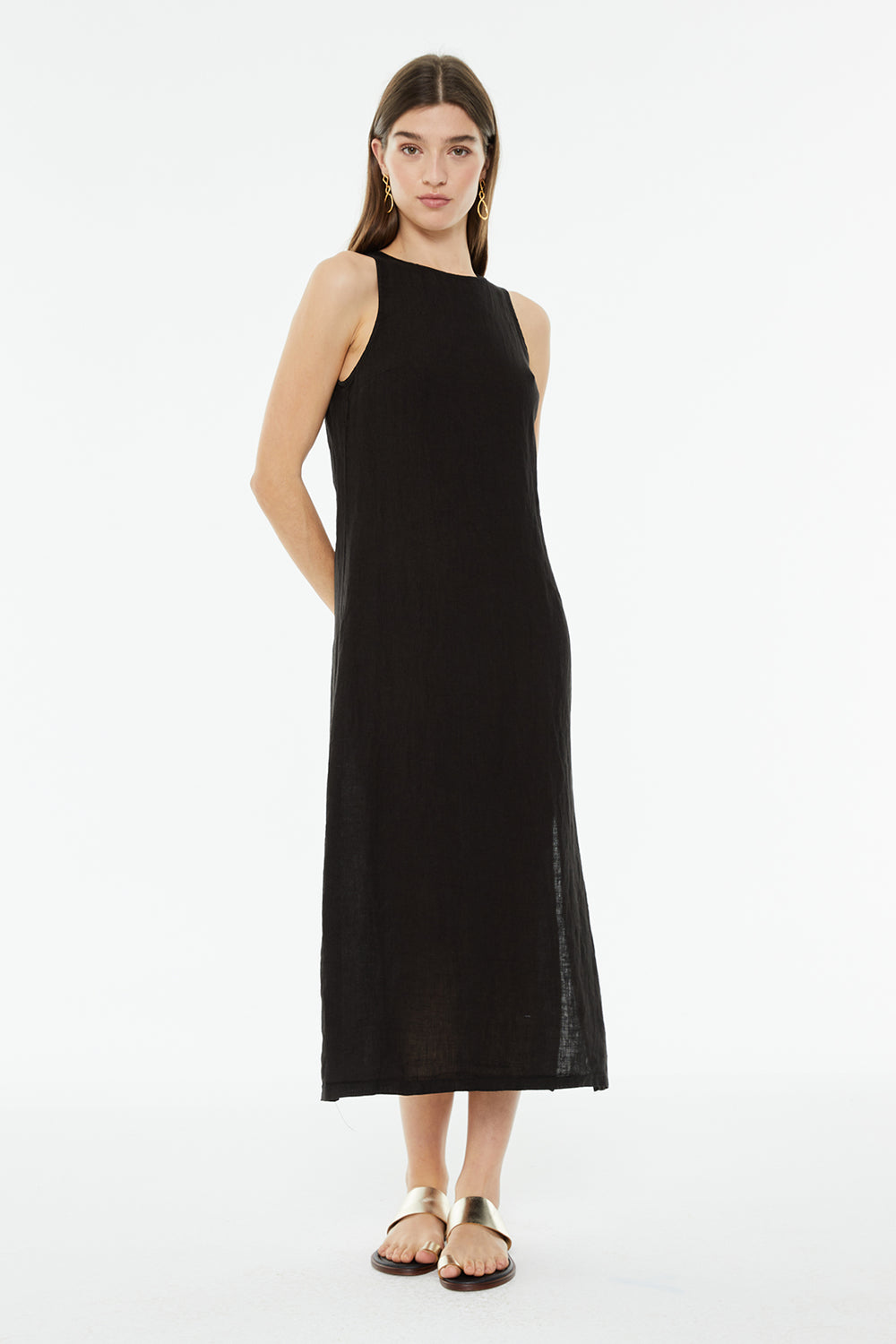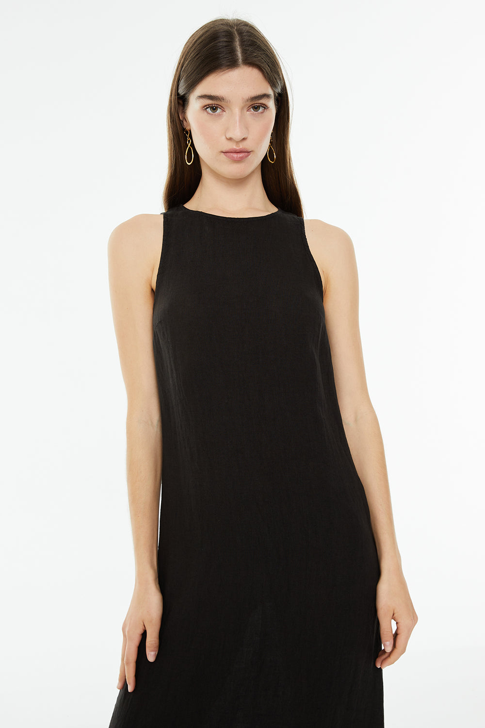 Vestido midi de lino sin mangas con cuello redondo