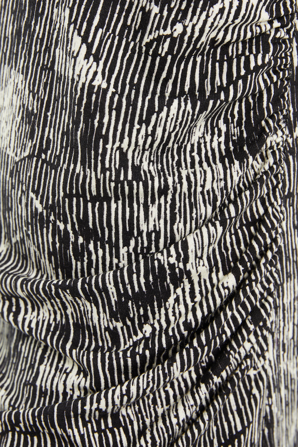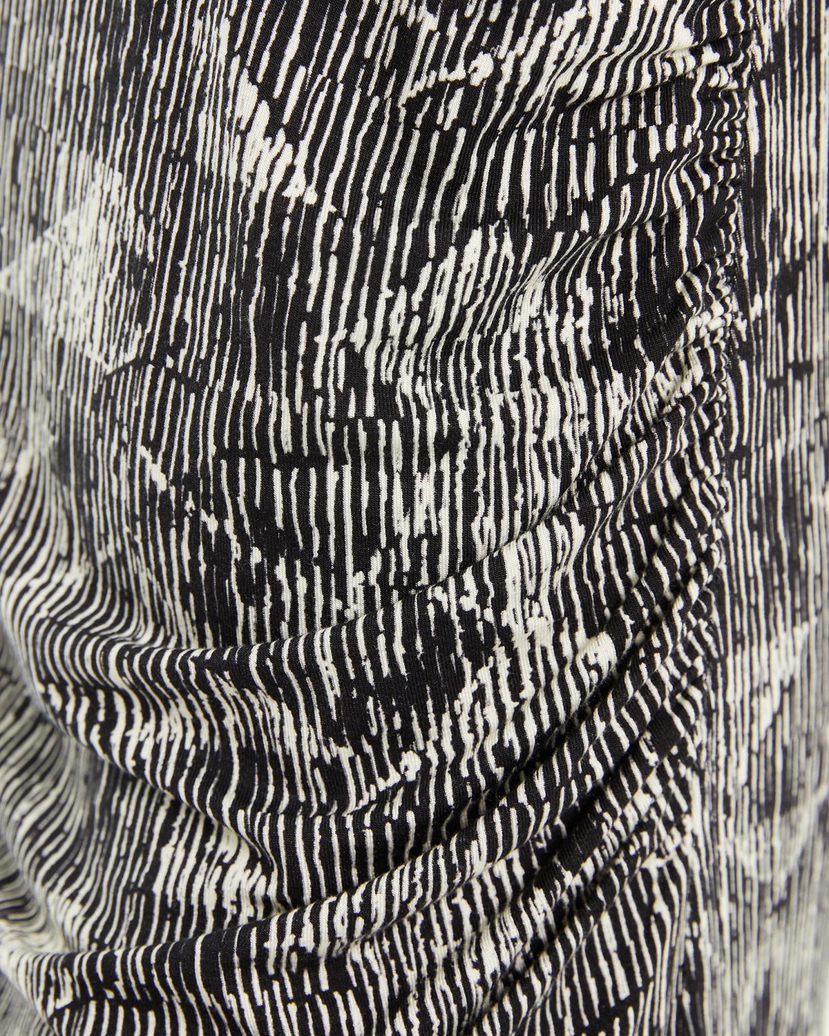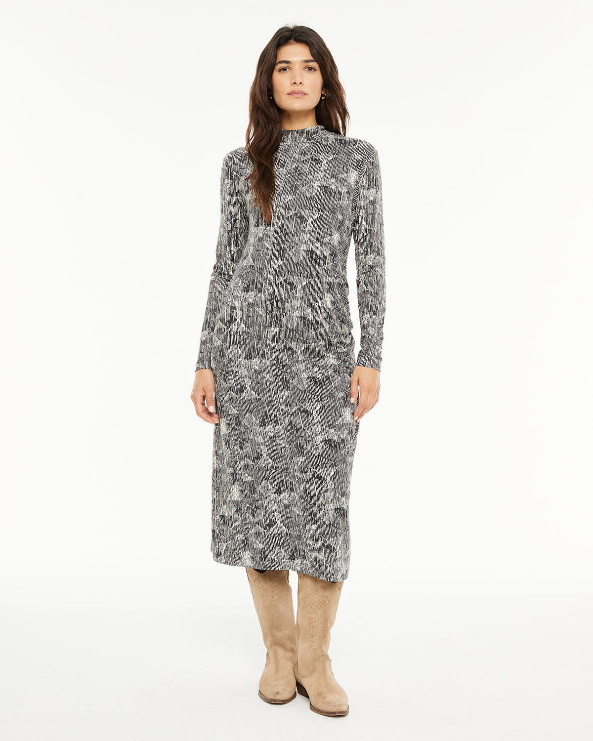 Vestido confort de mujer, con estampado bicolor, escote redondo y manga larga. Prenda sostenible.
