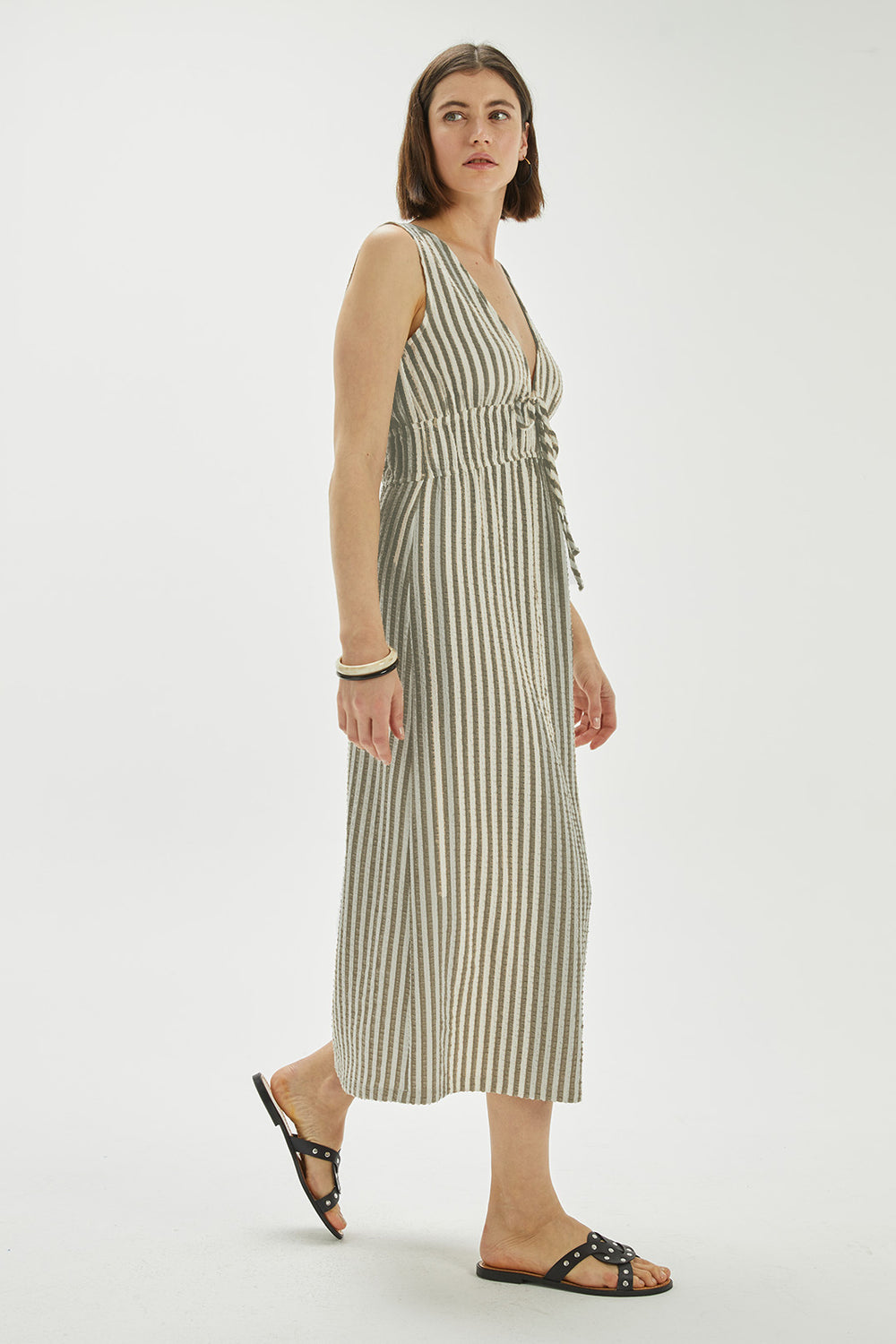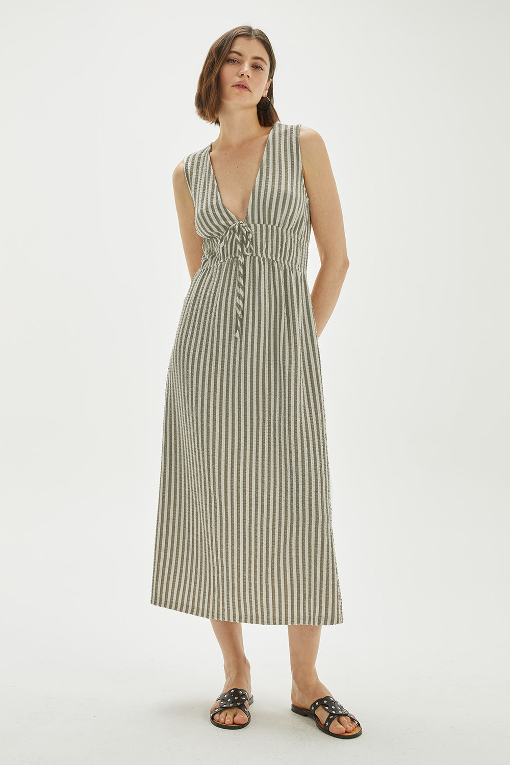 Vestido mujer de tirantes, con un largo midi y goma bajo pecho.